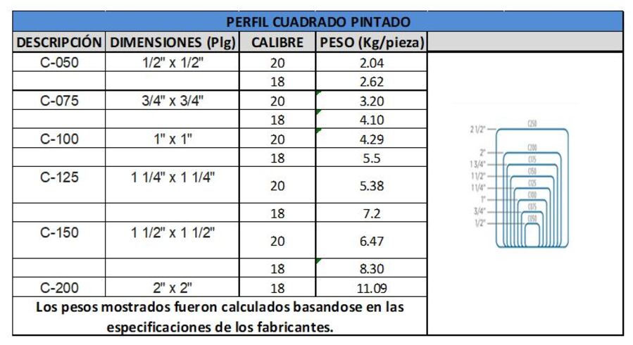 Contamos con una amplia variedad de perfil cuadrado en calibre 20 y 18, los cuales son usados en diversas aplicaciones tales como puertas, portones, divisiones, paneles, estructuras, entre otros.