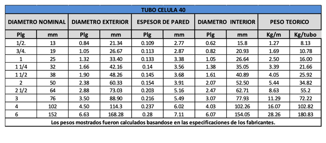 Contamos con tubería ced 30 y ced 40 en diferentes diámetros.